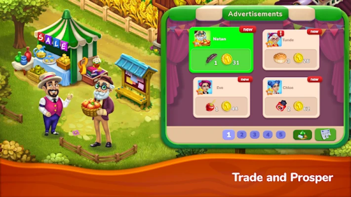 🌽 Market and Advertisements. This is a wonderful place on your farm where you can meet your neighbors from other farms and exchange goods and resources with them.