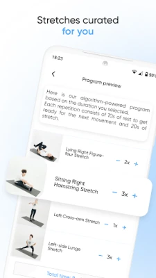 Only have a few minutes to stretch? No problem. You can define the duration of your daily routine and our intelligence will still give you the best stretching program possible!